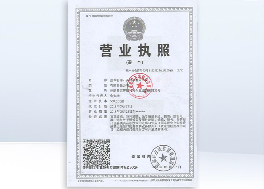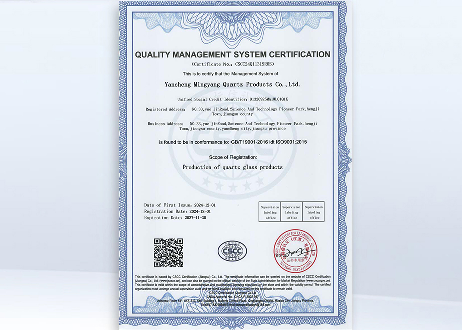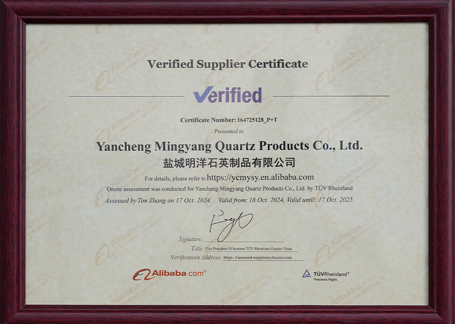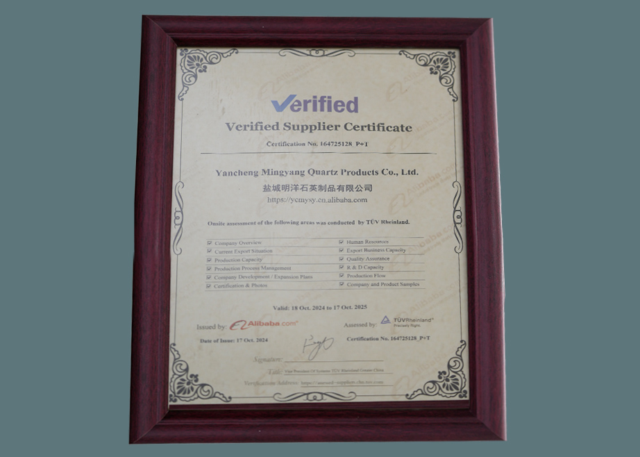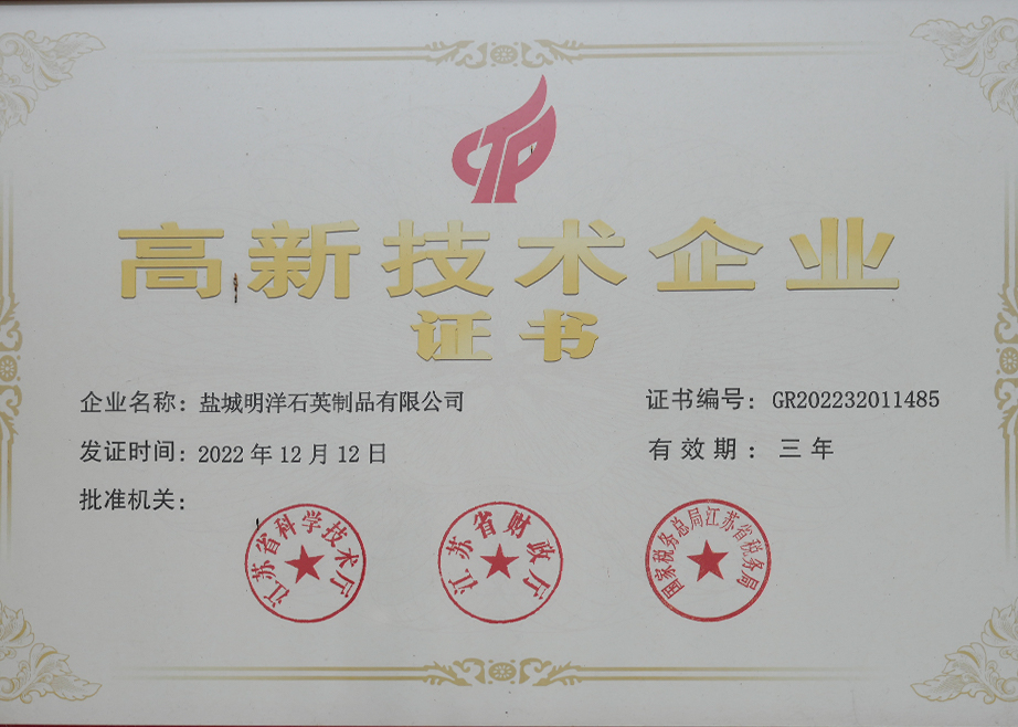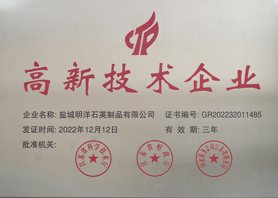 ইয়ানচেং মিনগিয়াং কোয়ার্টজ প্রোডাক্টস কোং, লিমিটেড কোয়ার্টজ এবং বিশেষ কাচের পণ্য উৎপাদনে বিশেষজ্ঞ একটি কোম্পানি। ইয়ানচেং মিনগিয়াং কোয়ার্টজ প্রোডাক্টস কোং লিমিটেড হল জিয়াংসুতে জিনঝো মিংডে কোয়ার্টজ গ্লাস কোং লিমিটেডের উৎপাদন কারখানা। প্রতিষ্ঠার পর থেকে, কোম্পানিটি দ্রুত বিকশিত হয়েছে, দেশে এবং বিদেশে উন্নত প্রযুক্তি এবং উত্পাদন সরঞ্জাম চালু করেছে এবং ক্রমাগত উন্নত এবং উন্নত পণ্যের গুণমান। তার নিজস্ব সুবিধার উপর নির্ভর করে, আমরা বাজারের জন্য উপযোগী বিভিন্ন পণ্য তৈরি করেছি এবং বিভিন্ন গ্রাহকদের চাহিদা পূরণ করেছি এবং আমাদের গ্রাহকদের জন্য অনেক জরুরী উত্পাদন সমস্যার সমাধান করেছি।